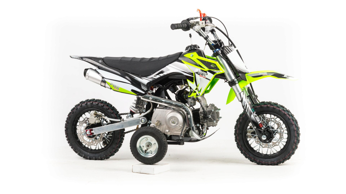 Разработанный как первый мотоцикл для вашего ребенка. Двигатель с автоматической трансмиссией, который не требует переключения скоростей и выжима сцеплений, просто повернул газ и поехал, так же имеется электростартер который облегчает запуск двигателя.Безопасность на детском питбайке - это обязательная функция: чека безопастности, которая выключает зажигание, если ваш ребенок упадет или слезет с мотоцикла, в сочетании с регулируемым ограничителем газа обеспечивает полный родительский контроль над велосипедом.Так-же имеются дополнительные колеса поддрежки, для самых юных гонщиков. Питбайк PWR Racing FRZ 50 - самый маленький питбайк в линейке PWR Racing. Отлично подойдёт как первый мотоцикл для вашего ребёнка (от 4-5 лет). Компактный, простой в управлении и настройке питбайк. Установлен двигатель 139FMA мощностью 3лс, КПП вариаторного типа. На ручке газа имеется болт для ограничения хода р